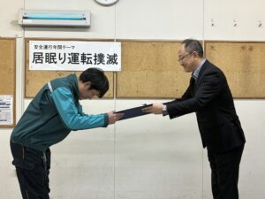 日頃実施している救命救急講習や車載AEDの整備など、安全教育の取り組みを背景に、冷静かつ適切に行動した点が評価され、今回の表彰となりました。