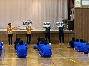 令和7年6月3日(火)中野市立豊田中学校の生徒約60名を対象に交通安全教室を実施しました。