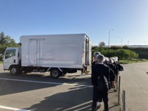 当日は、配送トラックを見学し、安全運転支援機能や温度管理システムの説明を受けたほか、センター内での仕分け作業を体験。商品が店舗に届くまでの工程を自分の目で確かめながら、正確さとスピードが求められる物流の重要性について理解を深めていただきました。